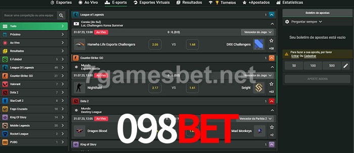O 098bet oferece uma grande seleção de opções de apostas em e-sports com probabilidades competitivas